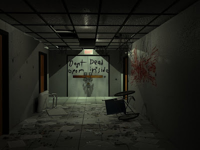 Llego a una casa con la luz encendida y llamo a la puerta. Pero no hay respuesta. Vuelvo a llamar pero nada. Oigo una leve respiración detrás mia, me giro lentamente y un zombie se acerca lentamente a mi. Con el remo le pego en la cabeza, el zombie se cae al suelo y el remo se parte. El zombie se levanta me coge del brazo esta a punto de morderme quando se abre la puerta y alguien dispara.